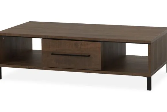 De salontafel is voorzien van één lade en twee open vakken. Deze indeling biedt handige opbergruimte voor tijdschriften, afstandsbedieningen en andere items, zodat de zithoek overzichtelijk blijft.