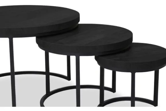 Salontafelset Hugo van het merk Lamulux bestaat uit 3 stijlvolle ronde tafels in verschillende hoogtes en diameters, uitgevoerd in de kleur Old Piano. De afmetingen van de tafels zijn: Ø40 x H37 cm, Ø55 x H44 cm en Ø75 x H51 cm.