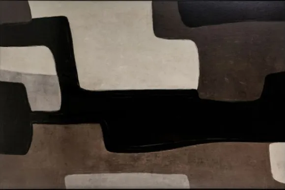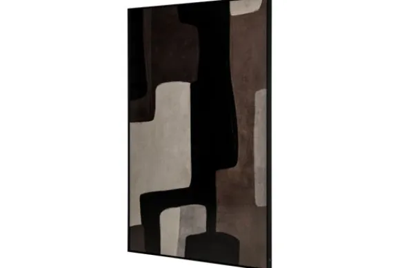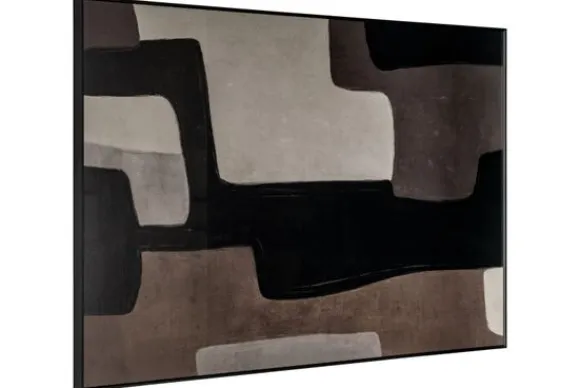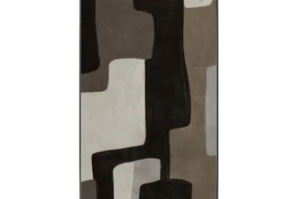 Schilderij Mirage 214067 van het merk Richmond Interiors ademt modern design met zijn abstracte vormen en warme kleurschakeringen. De combinatie van diepe zwarte vlakken met subtiele beige en grijze tonen creëert een kunstwerk dat rust uitstraalt.