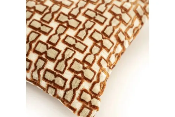 Naast terracotta is dit sierkussen ook verkrijgbaar in de kleur mustard.