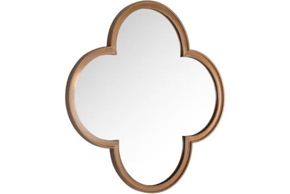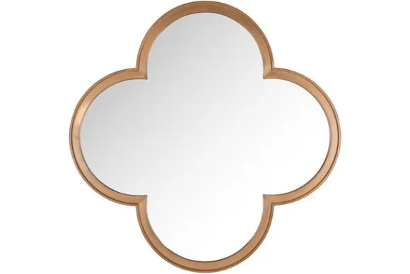 Spiegel Lowen 213506 van het merk Richmond Interiors is een elegante wandspiegel met een uitgesproken klavervorm. De warme goudkleurige rand geeft een luxueuze uitstraling en brengt een stijlvol accent aan op elke muur.
