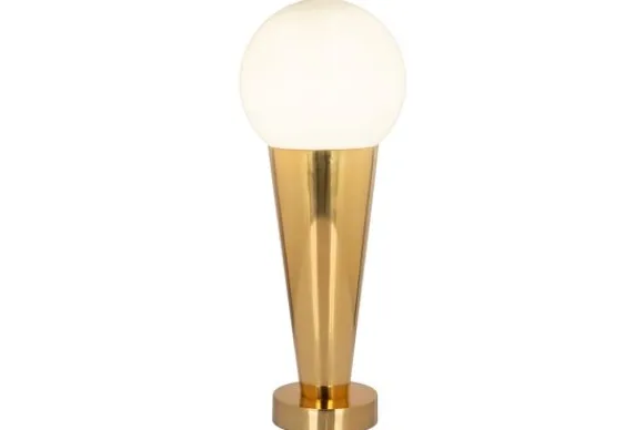 Tafellamp Cone 212445 van het merk Richmond Interiors is een stijlvolle toevoeging aan elk interieur. Met zijn glanzend goudkleurige voet en minimalistische vorm straalt de lamp een tijdloze luxe uit. De ronde, witte kap verspreidt een zacht en sfeervol licht, perfect voor een warme ambiance. Deze tafellamp past prachtig in een modern, art-decostijl of klassiek interieur en voegt een elegant accent toe aan elke ruimte.