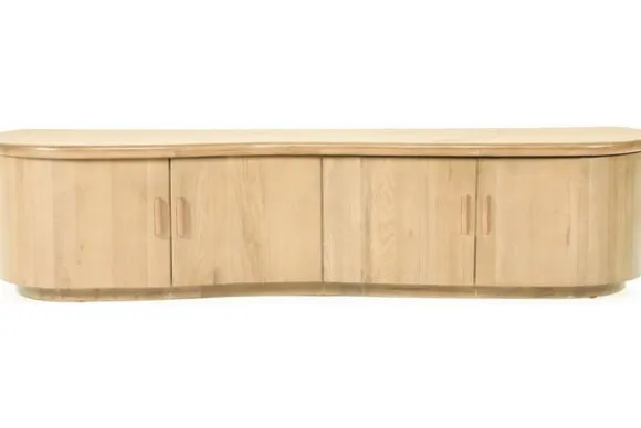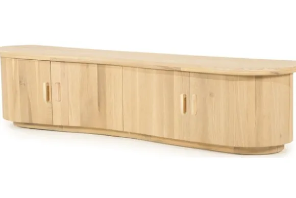 Tv-meubel Josh 96372 van het merk Eleonora is een organisch vormgegeven meubel van eikenhout en eiken fineer. De zachte golving in het blad en de frontpanelen geeft het meubel een rustige en natuurlijke uitstraling.