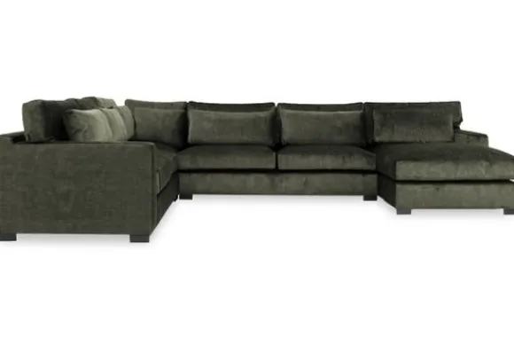 Naast comfort en design biedt de Frederique slimme functionaliteiten voor de ultieme relax ervaring. De 2-zitselementen kunnen worden uitgerust met een slaap-/Netflixfunctie, waardoor de bank in een handomdraai transformeert tot een royale loungeplek of extra slaapplek. Optionele extra opbergruimte is te vinden in het longchair element, waarbij de zitting omhoog geklapt kan worden om dekens, kussens of andere accessoires netjes op te bergen. Ook kan je kiezen voor rechte rugkussens voor een moderne, strakke look of T-vormige kussens die sierlijk over de armleuning vallen en de bank een nonchalante, uitnodigende uitstraling geven.