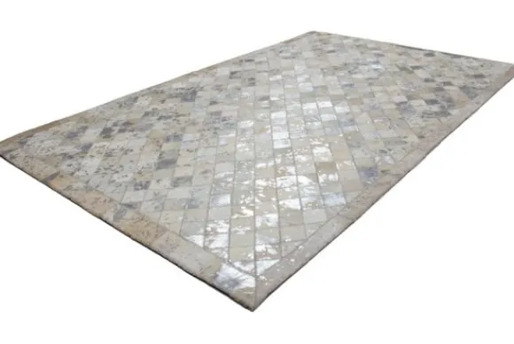 Vloerkleed Lavish 210 Grijs Zilver van het merk Divendo is verkrijgbaar in verschillende afmetingen en in het ivoor met goud. Dit laagpolige, patchwork kleed van 100% leer geeft jouw interieur een moderne en individuele touch. Het vloerkleed is met de hand gemaakt, elk leren tapijt is dus uniek. Het gebruik van fijne natuurlijke materialen en hoogwaardige afwerking zorgen voor een dynamische uitstraling die ongeëvenaard is. Maak een statement met dit leren vloerkleed en maak er een eyecatcher van in jouw kamer! Het stijlvolle ruitdessin, omgeven door een helder frame, oogt dankzij de extravagante kleurstelling bijzonder luxueus. De natuurlijke vacht kan na enige tijd en bij intensief gebruik haartjes verliezen. Ook kan de goudfolie onder bepaalde omstandigheden loslaten.