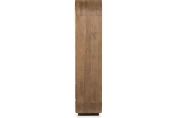 Het kabinet is gemaakt van mangohout en mango fineer. Het hout is geborsteld waardoor de nerf goed zichtbaar blijft. Mangohout staat bekend om zijn wisselende kleurtinten en stevige eigenschappen, wat het geschikt maakt voor dagelijks gebruik.