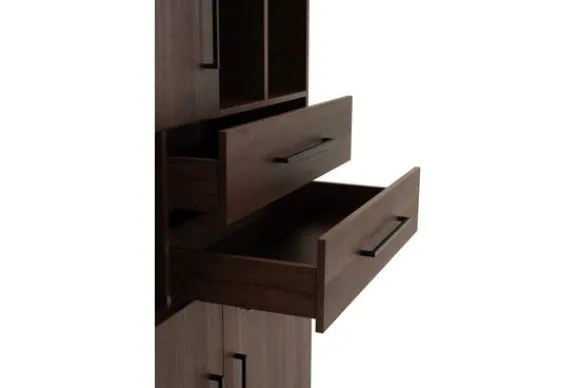 Wandkast Welriek – Flora van het merk Lamulux is een stijlvol meubel dat je interieur meteen warmte en karakter geeft. De kleur dark mango zorgt voor een rijke houtlook met een warme gloed, perfect passend in een klassiek interieur. Tegelijk zorgen de zwarte metalen grepen en het strakke ontwerp voor een stoere knipoog richting de industriële woonstijl.
