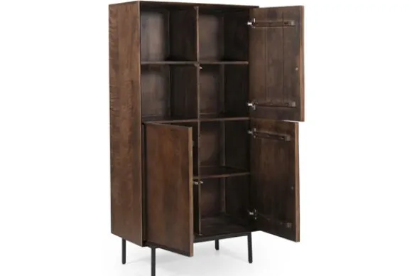 Bergkast Ravenstein van het merk Livingfurn is gemaakt van mangohout en geeft een strakke, minimalistische look aan de ruimte. Dankzij de slimme indeling biedt deze kast voldoende ruimte voor zowel opbergen als het presenteren van decoratieve eyecatchers.