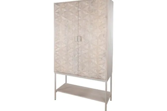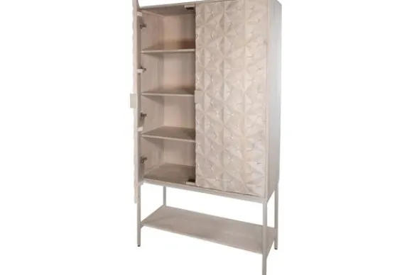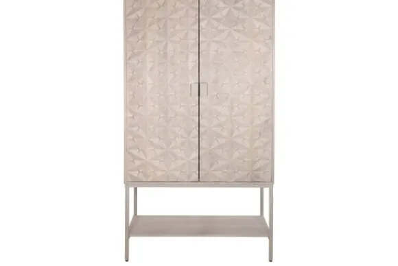 Bergkast Trinity TIN.CB.0305 van het merk Mysons is een praktische én stijlvolle opberger die meteen opvalt. De deuren zijn voorzien van een uitgesproken 3D-patroon dat zorgt voor diepte en karakter. Gemaakt van massief mangohout, straalt deze kast warmte en kwaliteit uit.