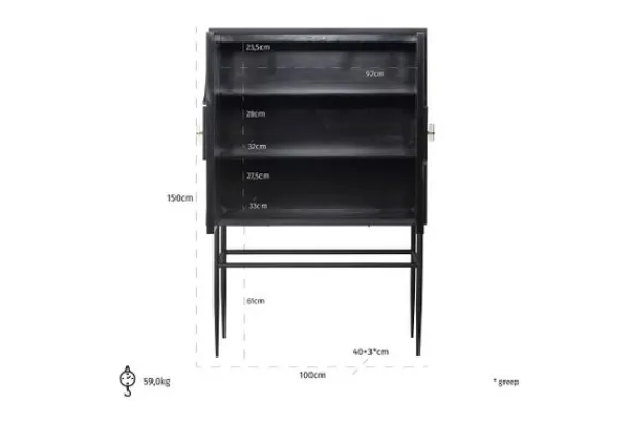 Wandkast Mendoza 211254 van het merk Richmond Interiors is een unieke eyecatcher in jouw kamer. Deze kast heeft twee deuren met hierop verschillende vormen die zijn gemaakt van dierproefvrij dierlijk bot en een poot en frame van hout in combinatie met metaal. De open poot zorgt voor een ruimtelijke uitstraling in jouw interieur. De kast is voorzien van een push to open systeem.