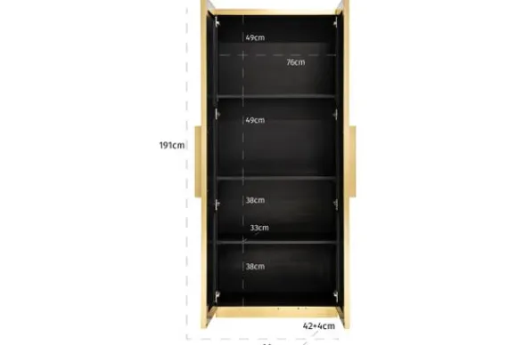 Wandkast Ironville 211719 van het merk Richmond Interiors is een unieke wandkast met een jaren 60 stijl dat in een nieuw jasje is gestoken. De wandkast heeft een luxueuze uitstraling door zijn strakke vorm gecombineerd met het ribbelmotief in de antieke messingkleur. De wandkast is voorzien van twee deuren met daarachter vier planken om je spullen op te bergen. De bovenste twee opbergplanken hebben een afmeting van B76xD33xH49 cm en de onderste twee opbergplanken hebben een afmeting van B76xD33XH38 cm.