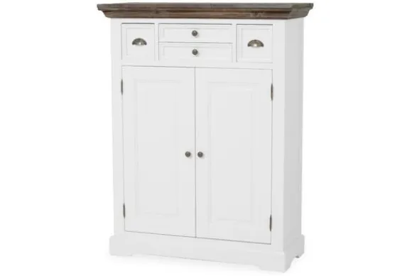 Bergkast Fleur DD 0018C van het merk Tower Living wordt geleverd in de kleur wit. De eiken delen worden licht geborsteld en afgewerkt met een olie. Je kunt de kast makkelijk schoonmaken met een zachte vochtige doek. Deze kast heeft diverse opbergmogelijkheden, namelijk twee dichte deuren en vier lades.
