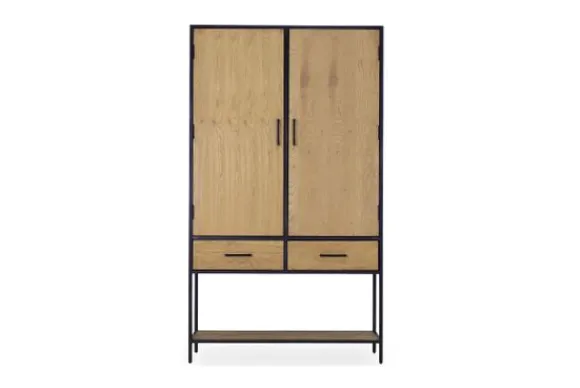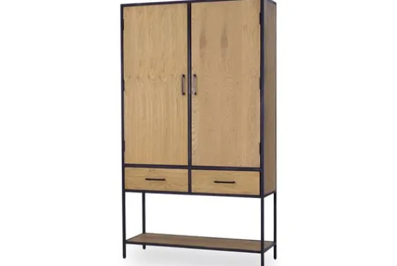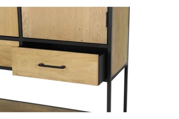 Bergkast Luna NA 0084 van het merk Tower Living is onderdeel van een compleet woonprogramma. Deze meubelen zijn gemaakt van gefineerd eiken en worden gecombineerd met een metalen frame in de kleur gun metal. De prachtige houtkleur is verkregen door het eikenhout te roken. Voor een gemakkelijk onderhoud worden de meubelen met een matte lak afgelakt. Strakke lijnen en natuurlijke kleuren kenmerken deze meubelserie. Deze kast is voorzien van twee deuren, twee lades en één open vak.