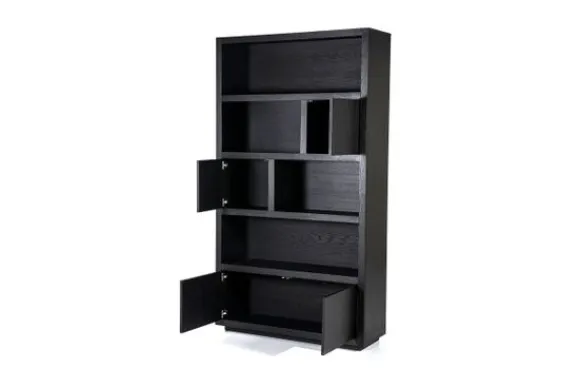 Het kabinet heeft open vakken in diverse formaten en is voorzien van vier deuren. Deze indeling biedt veel opbergruimte voor servies, woonaccessoires of boeken. De combinatie van open en gesloten vakken zorgt voor overzicht en praktisch gebruik. Het kabinet maakt deel uit van de Helsinki met bijpassende meubels.