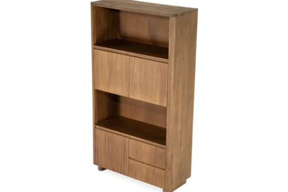 Het ontwerp is strak en doordacht, met drie open vakken om je mooiste items tentoon te stellen, en meerdere deuren en lades die praktische opbergruimte bieden voor alles wat je uit het zicht wilt houden. De afgeronde hoeken en greeploze fronten geven de kast een eigentijds, minimalistisch karakter.