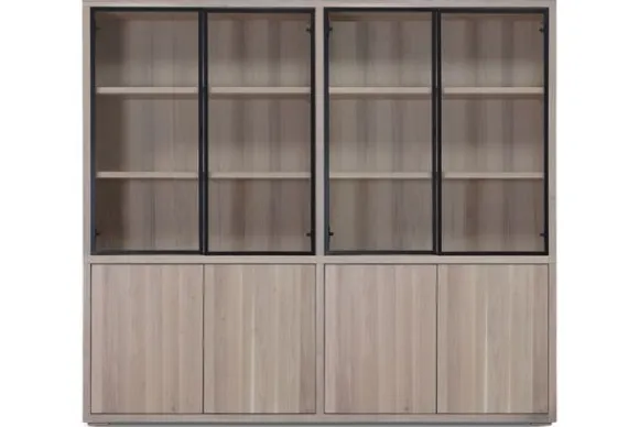 Bergkast Established van het merk Van Dijk Furniture is verkrijgbaar in verschillende kleuren 100% massief eikenhout. Eikenhout leeft en geeft hierdoor karakter aan jouw meubelstuk. Daarnaast is elk stuk uniek door de nerven en noesten. Deze kast heeft onderin vier deuren en hierboven zes open vakken achter glazen deuren. Veel display en opbergmogelijkheden dus! De dichte deuren zijn te openen met een push to open systeem.