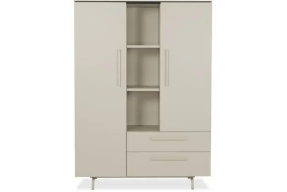 De Ortega bergkast beschikt over een ruime indeling met deuren, lades en opbergvakken. Hierdoor is er voldoende ruimte om spullen overzichtelijk op te bergen. Alle deuren en lades zijn voorzien van softclose, wat zorgt voor een stille en soepele sluiting en prettig dagelijks gebruik.