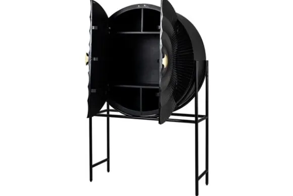 Bergkast Feda 211594 van het merk Richmond Interiors is gemaakt van mangohout in de kleur zwart. Mangohout kun je herkennen aan de vele kleurschakeringen en ongelijkheden in het oppervlakte van het hout, waardoor geen enkel meubelstuk hetzelfde is. Mangohout is een duurzame houtsoort. De kast heeft een unieke uitstraling door zijn ronde vorm met zwart metalen onderstel. De kast is voorzien van twee deurtjes met daarachter voldoende opbergruimte.