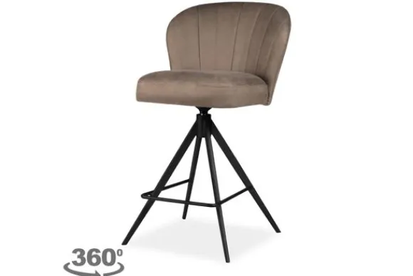 De zitting is 360 graden draaibaar en voorzien van een autoreturn systeem, wat er voor zorgt dat de barkruk automatisch terugdraait naar zijn originele stand. De stevige sterpoot, verkrijgbaar in vijf afwerkingen, voegt een luxe en moderne uitstraling toe.