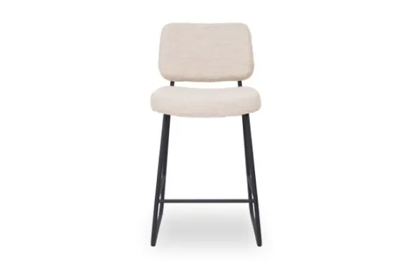 Barkruk Noah is uitgevoerd in naturel bouclé, een naturelkleurige geweven stof van onregelmatig bewerkte garens. Noah bestaat uit een rechthoekige rugleuning voorzien van afgeronde hoeken, aparte rugleuning en zitting, die verbonden zijn door een prachtig doorlopend zwart frame, voorzien van een handgreep op de achterkant van de rugleuning. Dit maakt Noah extra functioneel waardoor het aanschuiven van deze eetkamerstoel nog makkelijker wordt. De sledepoot zorgt voor een luchtig en elegant uiterlijk en de extra opstap maakt de zit nog net even iets makkelijker en comfortabeler.