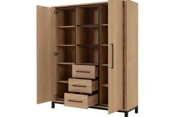 Bergkast Ravelle van het merk Lamulux is een stijlvolle kast in de kleur Old Oak. De bergkast heeft 2 deuren, 3 lades en 3 open vakken en beschikt standaard over een softclose systeem.