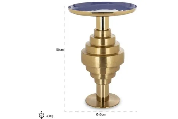 Bijzettafel Renao 212538 van het merk Richmond Interiors is gemaakt van brass (staal in mat goud) met een paars geglazuurd blad. Brass is een legering van koper en zink, dat vervolgens wordt afgewerkt met een geborsteld effect. Dit zorgt voor een matte afwerking. Brass is eenvoudig schoon te maken met een lichtvochtige doek, het nadrogen van het oppervlak zorgt voor een streeploos resultaat. De unieke poot zorgt voor een sierlijke uitstraling, hierdoor is de bijzettafel lekker opvallend in jouw interieur!