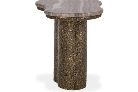 Bijzettafel Abandos 214055 van het merk Richmond Interiors heeft een opvallend blad van marmer met een speelse vorm. De lichte tekening in het blad zorgt voor een rustige uitstraling en maakt elke tafel uniek.