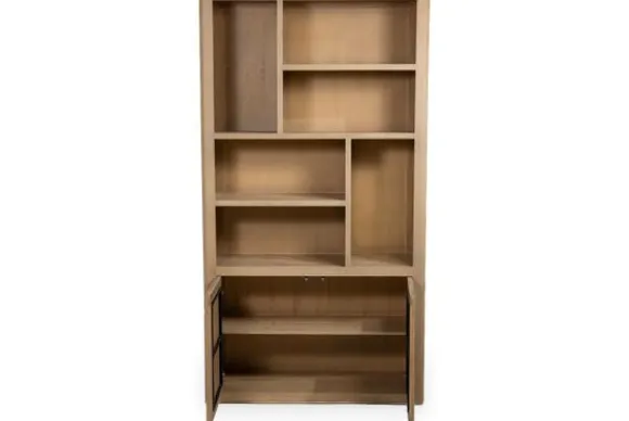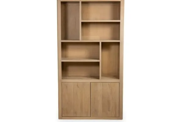 Boekenkast Tenna NL 0217 Naturel van het merk Tower Living is gemaakt van hoogwaardig mangohout in een warme naturel tint. Het ontwerp heeft open vakken in verschillende formaten, waardoor elk object een eigen podium krijgt.