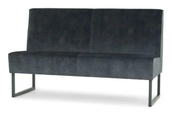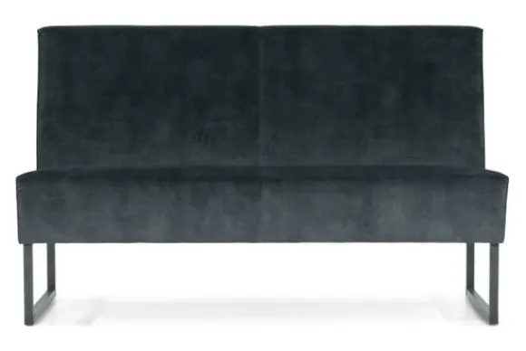 Deze eetkamerbank komt met een geknepen naad, metalen sledepoten, gladde rugleuning en dichte voor- en achterkant. Deze eetbank wordt geleverd met een extra steunpoot in het midden vanaf een breedte van 220 cm tot 250 cm, vanaf 250 cm komt er een extra sledepoot in het midden.