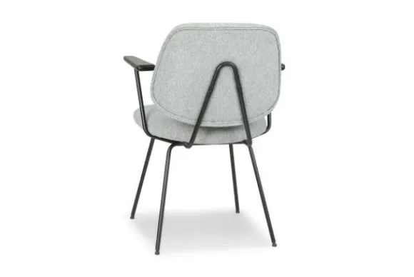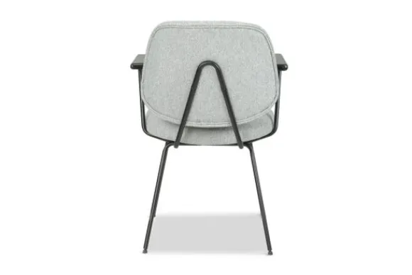 Eetkamerstoel Lynn grey fletcher 95571 van het merk Eleonora is beschikbaar in verschillende kleuren. Deze eetkamerstoel is bekleed met een stof die je kunt schoonmaken met een droge doek. De stoel heeft metalen poten en metalen armleuningen met houten armleggers. Lynn heeft een ruimtelijke uitstraling doordat de zitting en de rugleuning met elkaar verbonden zijn via het metalen frame en niet gelijk in elkaar overlopen.