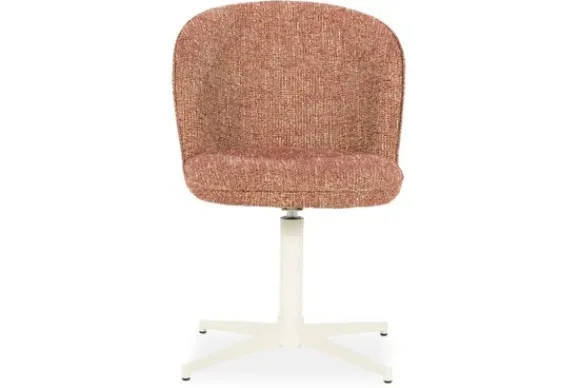 De draaibare basis in wit gepoedercoat metaal voegt een modern en functioneel element toe, terwijl het slanke onderstel de stoel visueel licht en luchtig houdt. Een perfecte balans tussen design en dagelijks gebruiksgemak.
