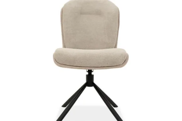 Eetkamerstoel Daniel van het merk Olijk heeft een rustige uitstraling. De zitting is aan de binnenkant uitgevoerd in de lichte stof Art Beige en aan de buitenkant in microvezel Chicago Toffee. De stoel staat op een zwarte metalen spinpoot die zorgt voor een stabiele basis.