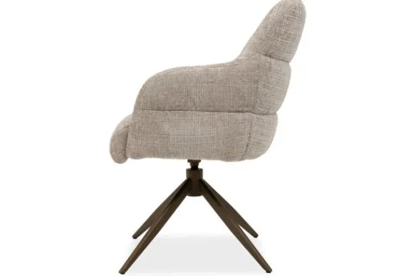 Eetkamerstoel Neptunus Cremona 14 van het merk Veyron is een draaibare eetkamerstoel met een stijlvolle en comfortabele uitstraling. De zitting is bekleed met een zachte beige stof met een subtiele structuur, wat zorgt voor een warme sfeer aan de eettafel.
