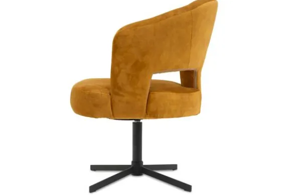 Eetkamerstoel Forza van het merk Opulenza is verkrijgbaar in diverse kleuren en materialen zoals stof, velvet en microleder. De ronde rugleuning met een open detail geeft stijlvolle ondersteuning aan de onderrug, terwijl de brede zitting en diepe zitdiepte zorgen voor een comfortabele, robuuste uitstraling.