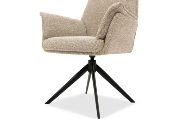 Eetkamerstoel Hecate van het merk Elysia is een stoel met comfortabele armleuningen. De vorm past makkelijk bij verschillende tafels en woonstijlen.