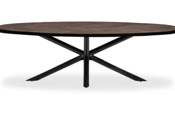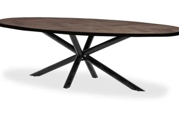 Eettafel Danois van het merk Country Style is een moderne eetkamertafel met een ovaal tafelblad. De taps aflopende randen geven het blad een verfijnde vorm zonder scherpe hoeken. Deze uitvoering heeft een metalen spinpoot die de tafel een ruimtelijke en industriële uitstraling geeft. Danois is verkrijgbaar in verschillende kleuren en afmetingen en kan worden uitgevoerd met andere poten naar wens.