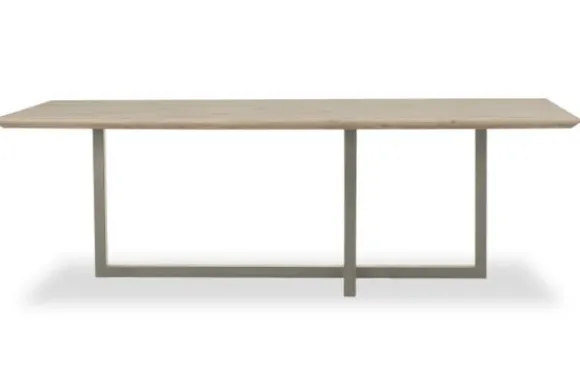 Eettafel Hector van het merk Van Dijk Furniture is een toonbeeld van pure eenvoud en ingetogen luxe. Het tafelblad, vervaardigd uit hoogwaardig eikenhout, straalt een warme natuurlijke charme uit die moeiteloos harmonieert met het licht ruwe oppervlak en de zachte kleurnuances van het hout. Met zijn subtiel afgeschuinde randen en slanke vormgeving oogt de tafel luchtig en ruimtelijk, zonder in te boeten aan karakter.