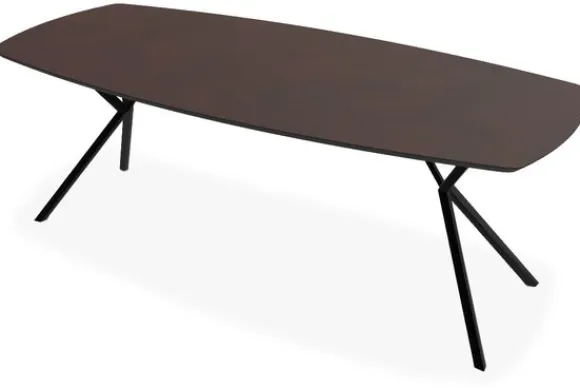 Eettafel Montevideo van het merk Every Table is een hedendaagse eyecatcher met een tijdloos en elegant karakter. Het Deens ovale blad met zachte, organische lijnen en een taps aflopende zwarte rand creëert een luchtige verfijning, alsof het blad haast lijkt te zweven. Deze tafel is verkrijgbaar in diverse formaten en bladkleuren, van warme houttinten tot marmerlook keramiek, en past perfect binnen woonstijlen zoals Hotel Chic, Modern of Japandi. De poot is in verschillende uitvoeringen en andere kleuren te kiezen. Een stijlvol samenspel van vorm en functie dat je eethoek een luxueuze uitstraling geeft.