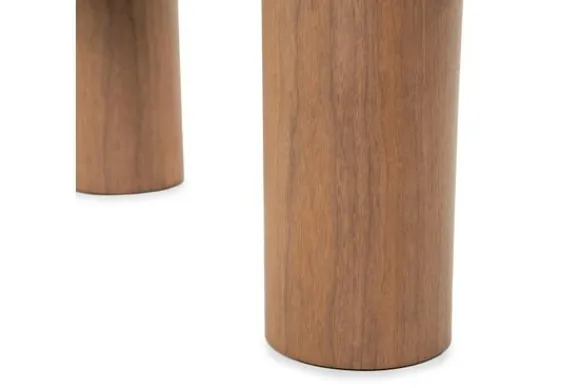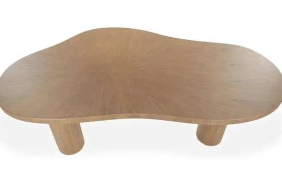 Eettafel Bobbie van het merk Eleonora is een artistiek vormgegeven tafel dat organische elegantie combineert met moderne luxe. Het asymmetrische blad, uitgevoerd in walnoot fineer met een verfijnde gelakte afwerking, geeft de tafel een speelse en unieke uitstraling. De drie stevige, cilindervormige poten zorgen voor een solide basis en versterken het sculpturale karakter van het design.