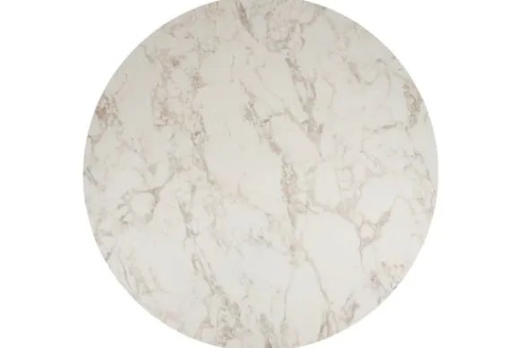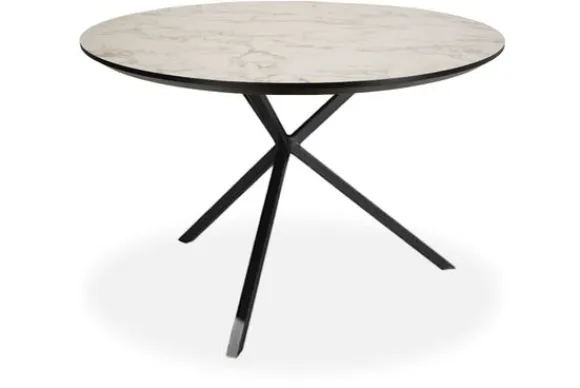 Het tafelblad heeft een dikte van 2,8 cm. De eettafel wordt geleverd met een zwarte spinpoot.