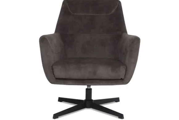 Fauteuil Toby is een ergonomische draaifauteuil uitgevoerd in antraciet kleurig velours. De mooie strakke lijnen in combinatie met de subtiele rondingen zorgen ervoor dat Toby een lust voor het oog is en daarnaast is voorzien van maximaal comfort. De dikke zitting en perfecte vorm armleuningen zorgen voor een extra fijne zit. De toffe decoratieve stofvlakken op de armleuningen en de rugleuning, afgewerkt met een contrasterend stiksel zorgen voor een trendy, speelse en luxe uitstraling. De robuuste metalen kruispoot uitgevoerd in zwart zorgt voor stevigheid en geeft een moderne twist.