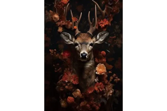 Glasschilderij Hert met Bloemen 080120-1028 van het merk Ter Halle is een verfijnd kunstwerk waarin een statig hert en rijke bloemdetails samenkomen tot een tijdloos en elegant kunstwerk.