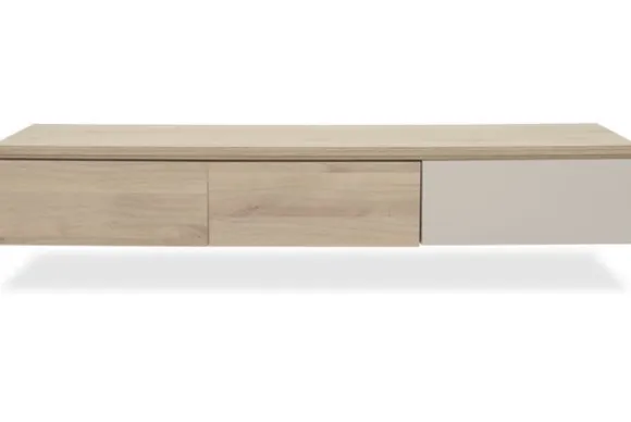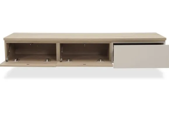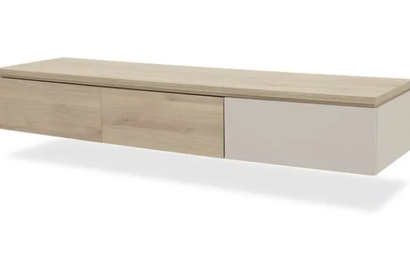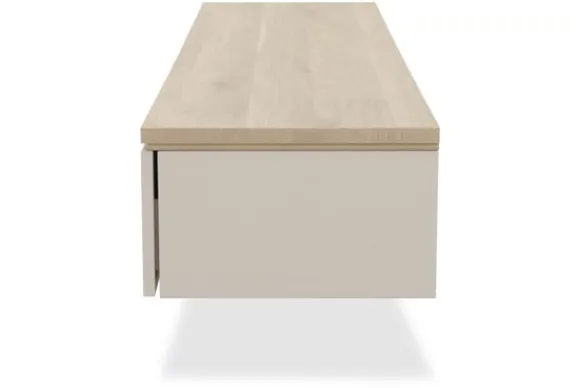 Monteer het tv-meubel hangend voor een strak effect of kies voor 12 cm hoge poten voor een luchtige look.