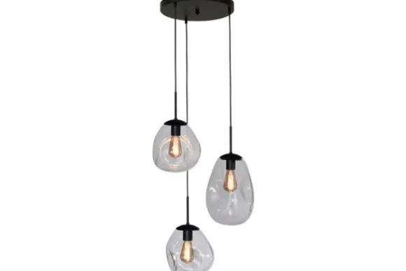 Hanglamp Lava 2762-05-35-3-00-011 van het merk Masterlight is een unieke lamp met een chique uitstraling. Het prachtige glas is mond geblazen in Italië. De basis is van metaal en uitgevoerd in de kleur zwart. Twee glazen lampenkappen hebben een diameter van 24 centimeter en zijn 23 centimeter hoog en één glazen lampenkap heeft een diameter van 22,5 centimeter en is 32 centimeter hoog. Door de vorm en kwaliteit van het glas is deze hanglamp een echte eyecatcher! Het gedeukte glas geeft de lamp een speelse look die goed te combineren is in verschillende interieurs. Hang de lamp boven je eettafel of in de gang. De lamp heeft een E27 fitting en wordt zonder lichtbron geleverd.