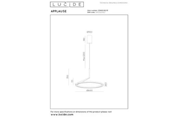 Hanglamp Applause van het merk Lucide is een moderne lamp met een minimalistisch en elegant design. De slanke aluminium ring met geïntegreerde LED-lichtbron zorgt voor een stijlvolle en gelijkmatige lichtverdeling boven de eettafel of het kookeiland. Dankzij de subtiele afwerking en het tijdloze ontwerp straalt deze hanglamp rust en verfijning uit.