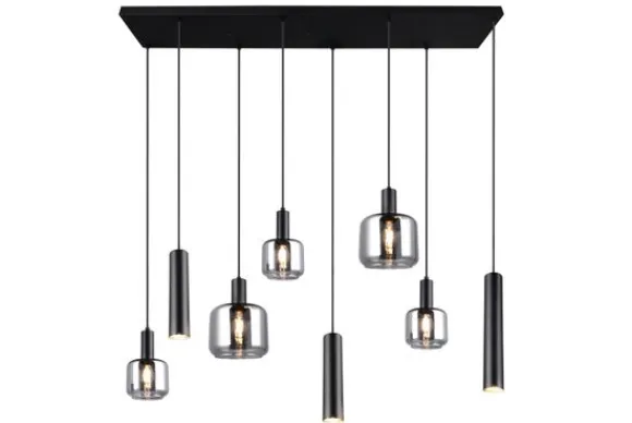 De lamp is exclusief lichtbronnen en beschikt over acht fittingen: twee keer E27, drie keer E14 en drie keer GU10. Deze lichtbronnen voeg je eenvoudig toe aan je bestelling voor de gewenste sfeer.
