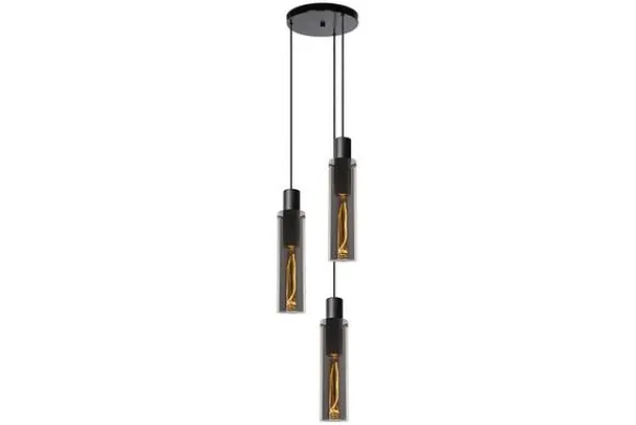 Hanglamp Orlando van het merk Lucide bestaat uit drie elegante glazen ciliders in verschillende hoogtes. Het fuméglas in combinatie met de zwarte stoffen kabels toveren je zithoek meteen om in een stijlvolle ruimte. De hoogtes van de lichtbronnen variëren tussen de 120 en 172 centimeter. Je kan deze hoogtes onderling nog aanpassen. Combineer met lange, buisvormige led filament lampen met fuméglas voor een afgewerkt resultaat. De ideale sfeer? Die creëer je door Orlando aan te sluiten op een dimmer.