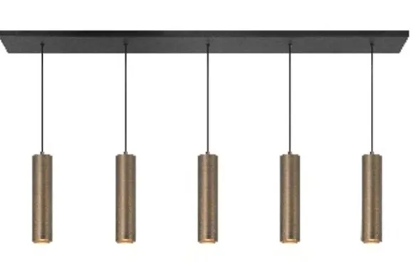 Hanglamp Perugia van het merk Highlight is een moderne lamp met een verfijnde uitstraling. De vijf slanke cilinders in bronskleurig metaal creëren een stijlvol lijnenspel dat perfect boven een eettafel of kookeiland tot zijn recht komt. Dankzij het ranke design geeft de lamp een hedendaagse en luxe sfeer aan de ruimte.