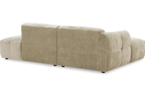 De bank laat zich samenstellen met verschillende materialen zoals leder en stoffen als velvet en bouclé. Elk materiaal heeft een brede keuze aan kleuren.