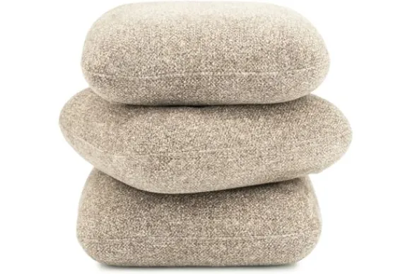 De Poef Pillowscape bestaat uit drie zachte kussenvormen die ogenschijnlijk nonchalant op elkaar zijn gestapeld, wat een dynamisch en creatief geheel oplevert. De bekleding voelt zacht aan en geeft de poef een warme en tijdloze uitstraling, terwijl de stevige foamvulling zorgt voor optimaal zitcomfort.